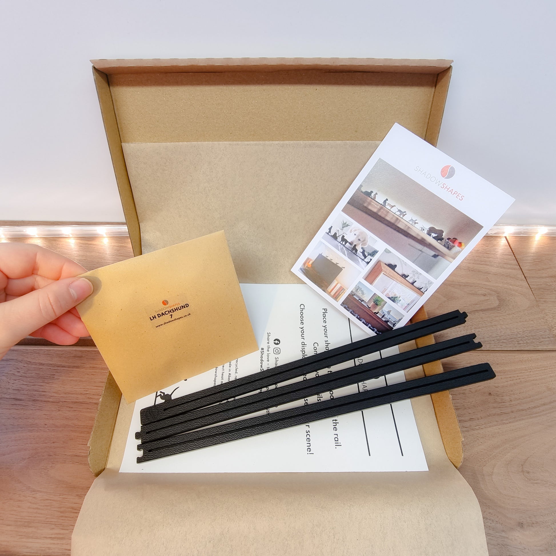 ShadowShapes Sets come in 5 or 7 ShadowShapes that you can slot into the base rail in the order of your choosing.